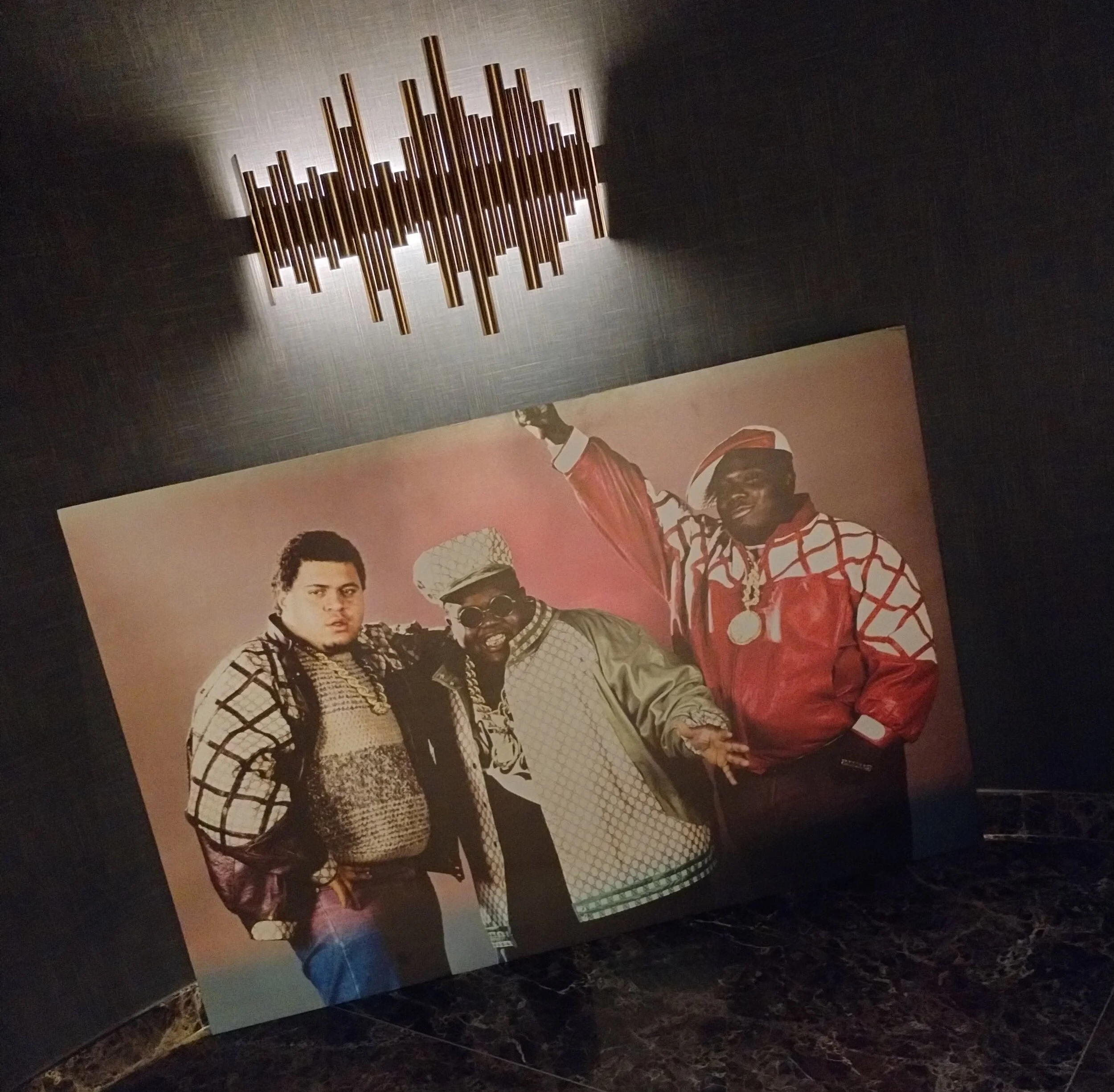 The Universal Hip Hop Museum will open sometime next year. But to celebrate the big 50. They partnered with the Video Music Box and the Mayor’s Office of the City of New York to celebrate with “The Drip: 50 Years of Hip Hop Fashion”. From the moment you entered the venue. Memorabilia of some of the best in Hip Hop graced the walk way and spiraling staircase with huge nostalgic images of groups and artists such as, Sugar Hill, The FAT Boys, Eric B. & Rakim, LL COOL J, Kool Moe D, Kriss Kross, Public Enemy and others.